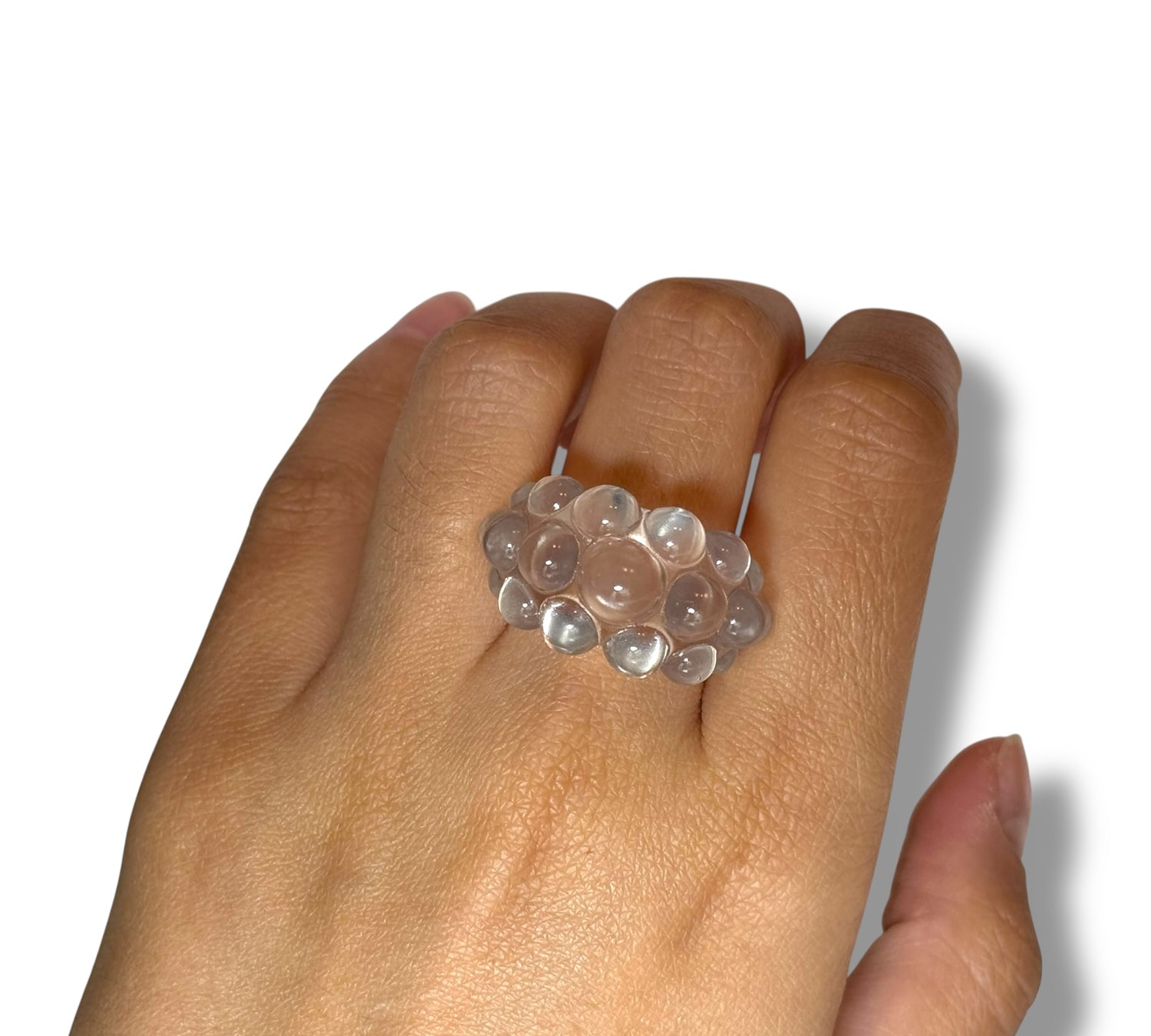 Una nube sólida. Un conjunto de burbujas atrapadas en el tiempo. Este anillo transforma lo efímero en objeto permanente, brillante y táctil.