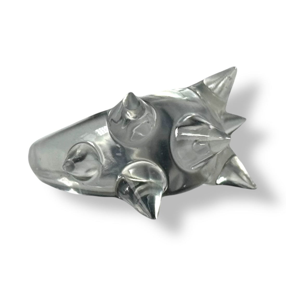 Frío como el hielo y afilado como el carácter que lo lleva. Una pieza escultórica que combina pureza y rebeldía en la misma mano.